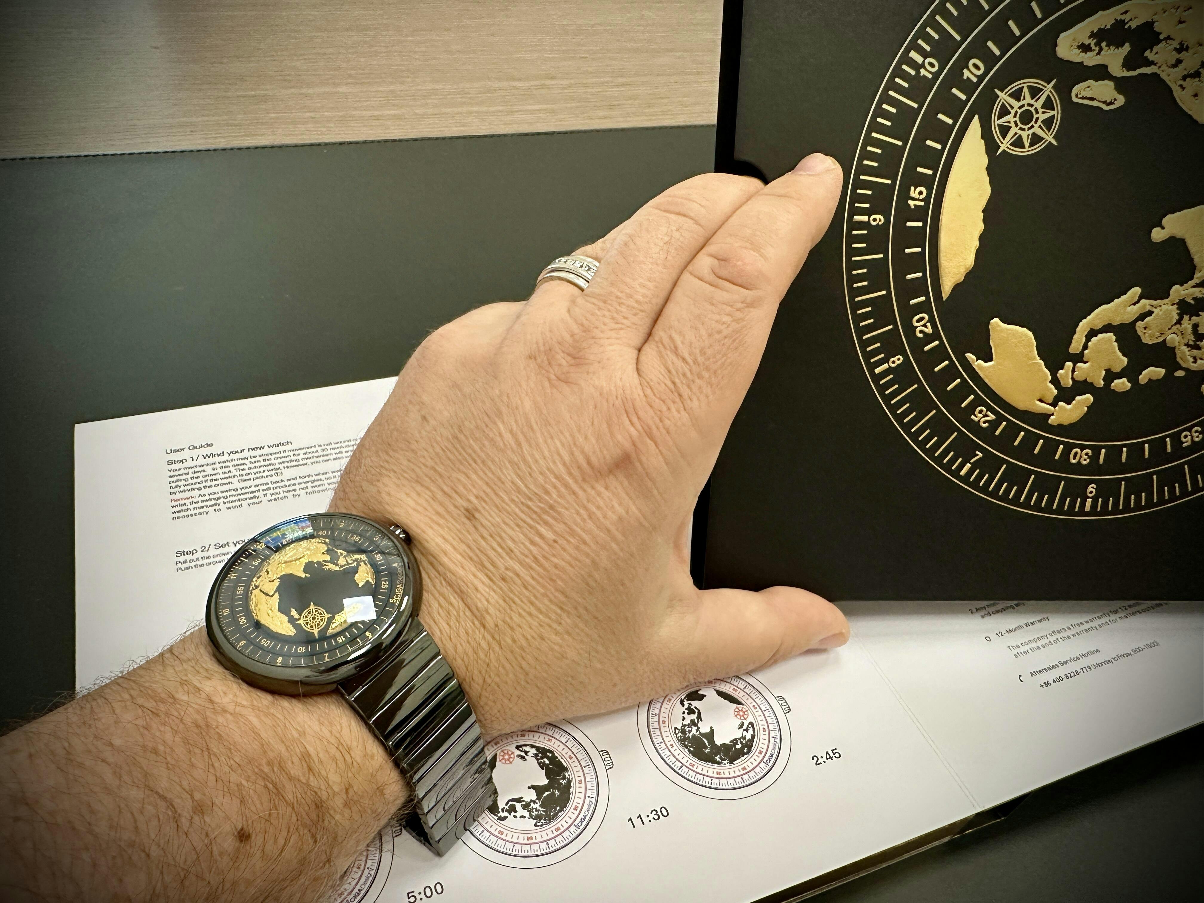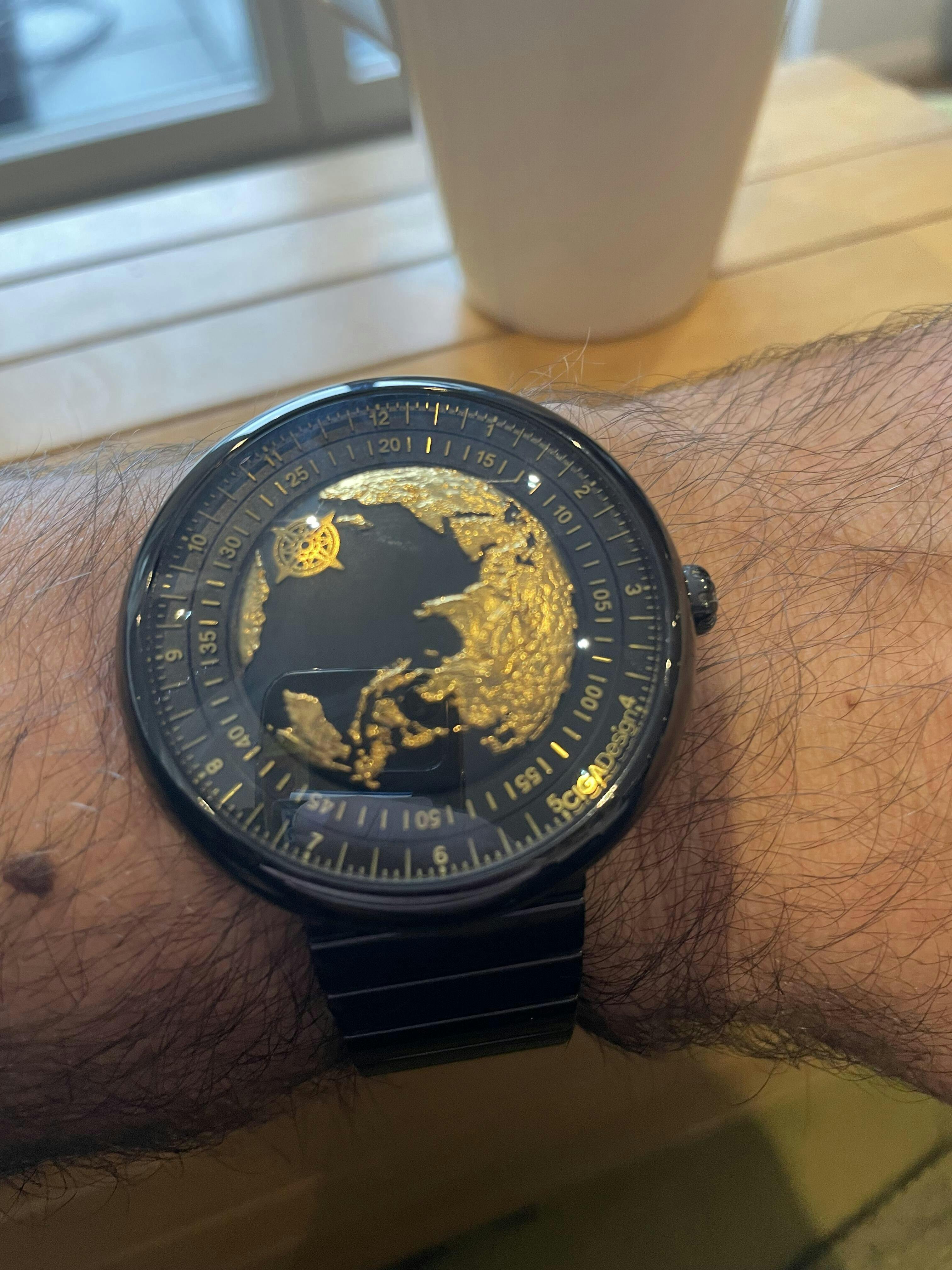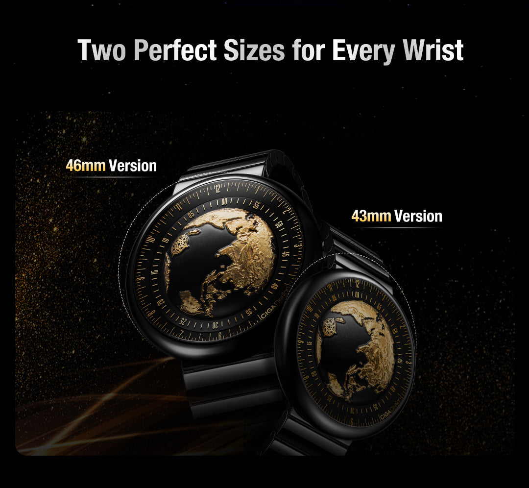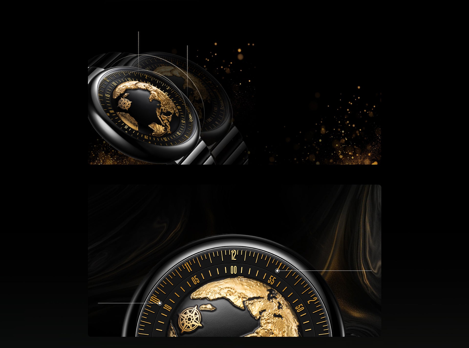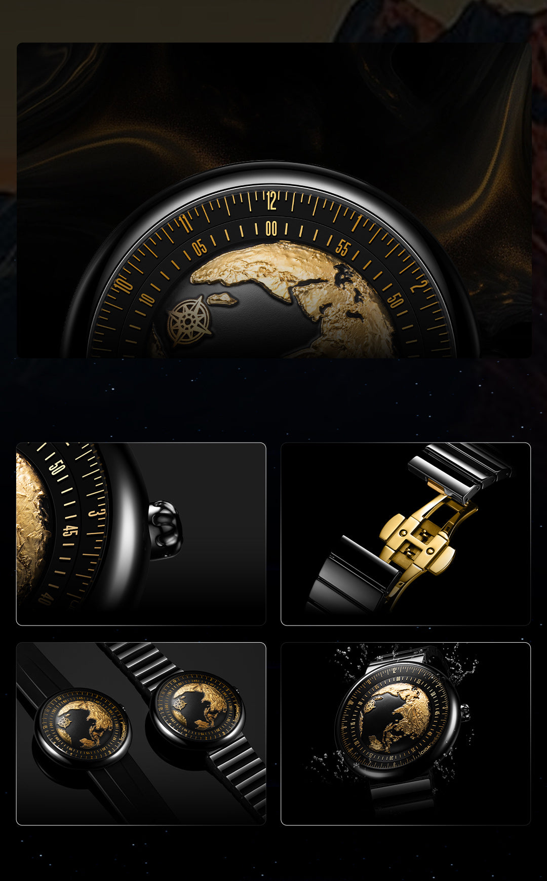 **Design e Materiali:** Con la sua cassa in ceramica raffinata, il quadrante dorato e i dettagli minuziosi, questo orologio è un pezzo d'arte al polso. L'intricato quadrante, realizzato con micro-incisioni e doratura multi-strato 24K, riproduce la Terra con un rapporto continente-oceano realistico.
