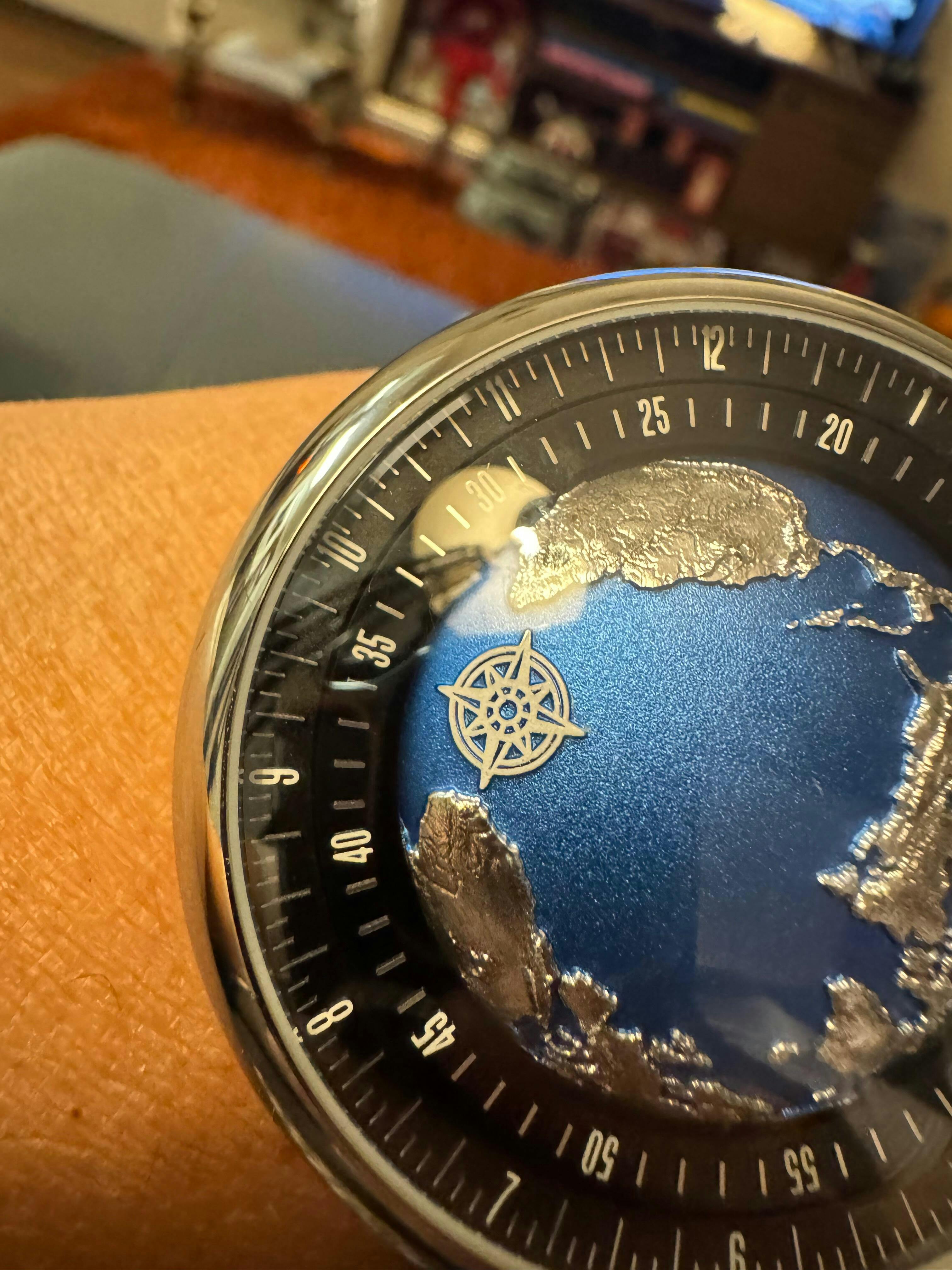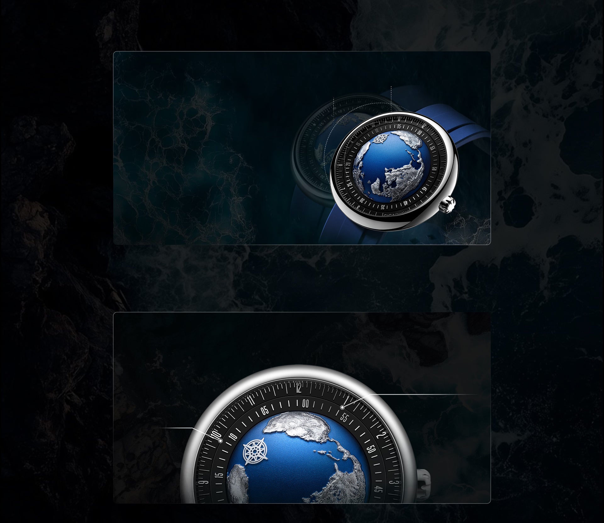 The intricate dial details crisp oceans, sprawling mountains, and pristine land, crafted with CNC engraving and multi-layer gilding, reproduces the Earth in the same continent-and-ocean ratio and depicts the real altitude of the terrain. Each Earth dial undergoes four intricate processes over 68 hours, delivering a breathtaking micro-artistic visual experience.