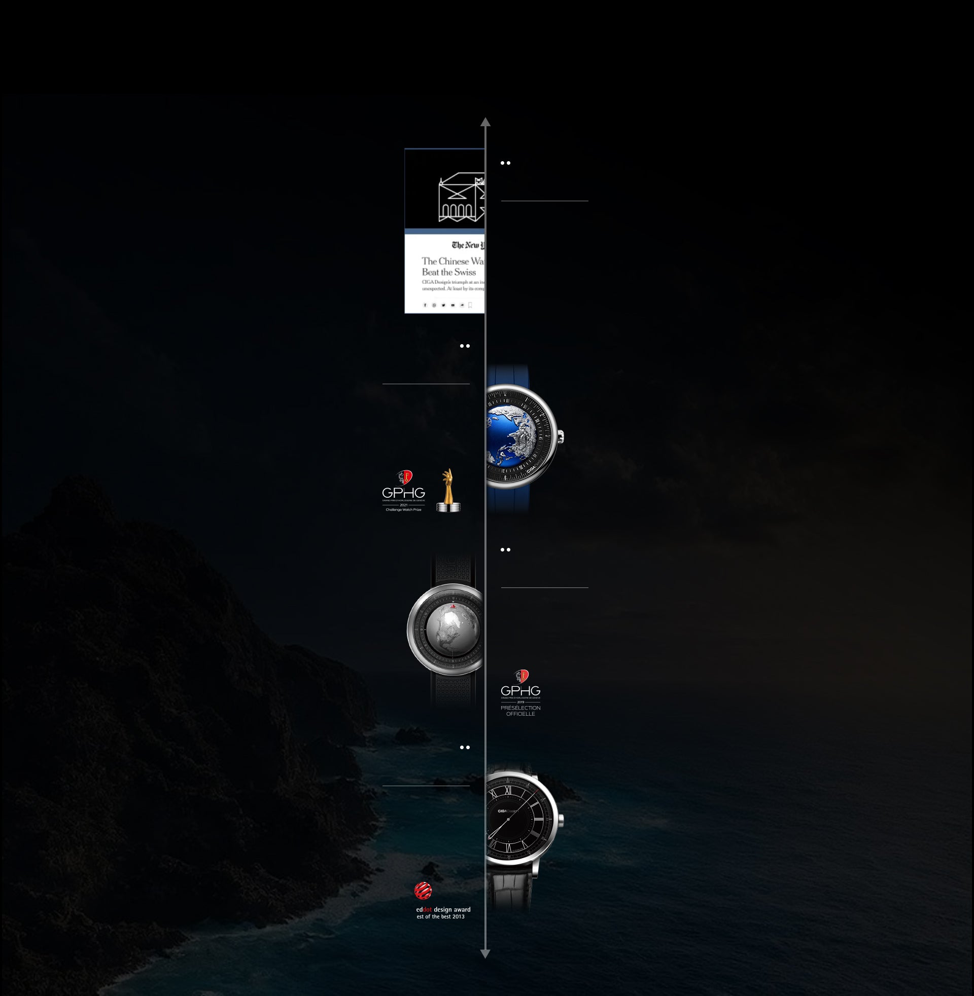 Drawing inspiration from sundials, the prototype of the "Blue Planet" "single-hand watch" was unveiled. It featured innovative “asynchronous-follow movement technology" and won the Red Dot: Best of the Best Award the same year.