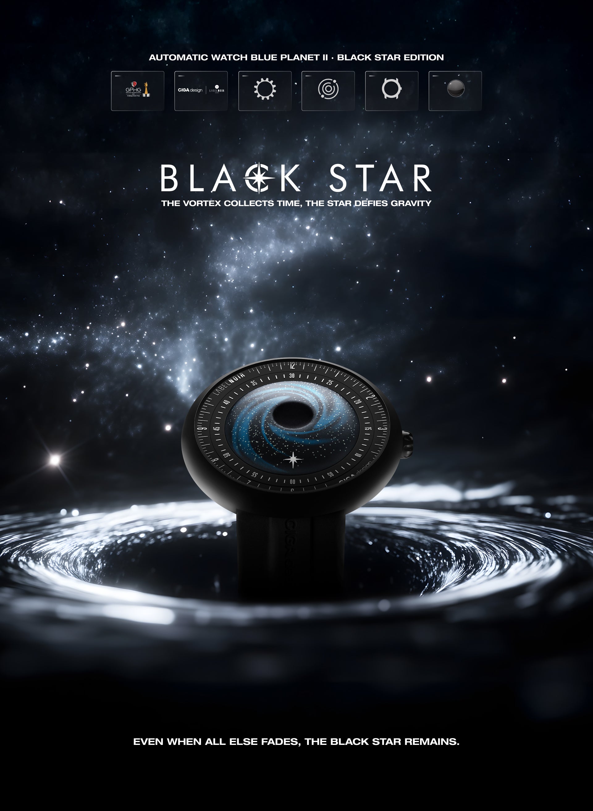 CIGA design x Label Noir explore a new dimension of time. From the Blue Planet’s grounded beauty to Black Star’s cosmic depth, this collaboration moves from Earth to the unknown.