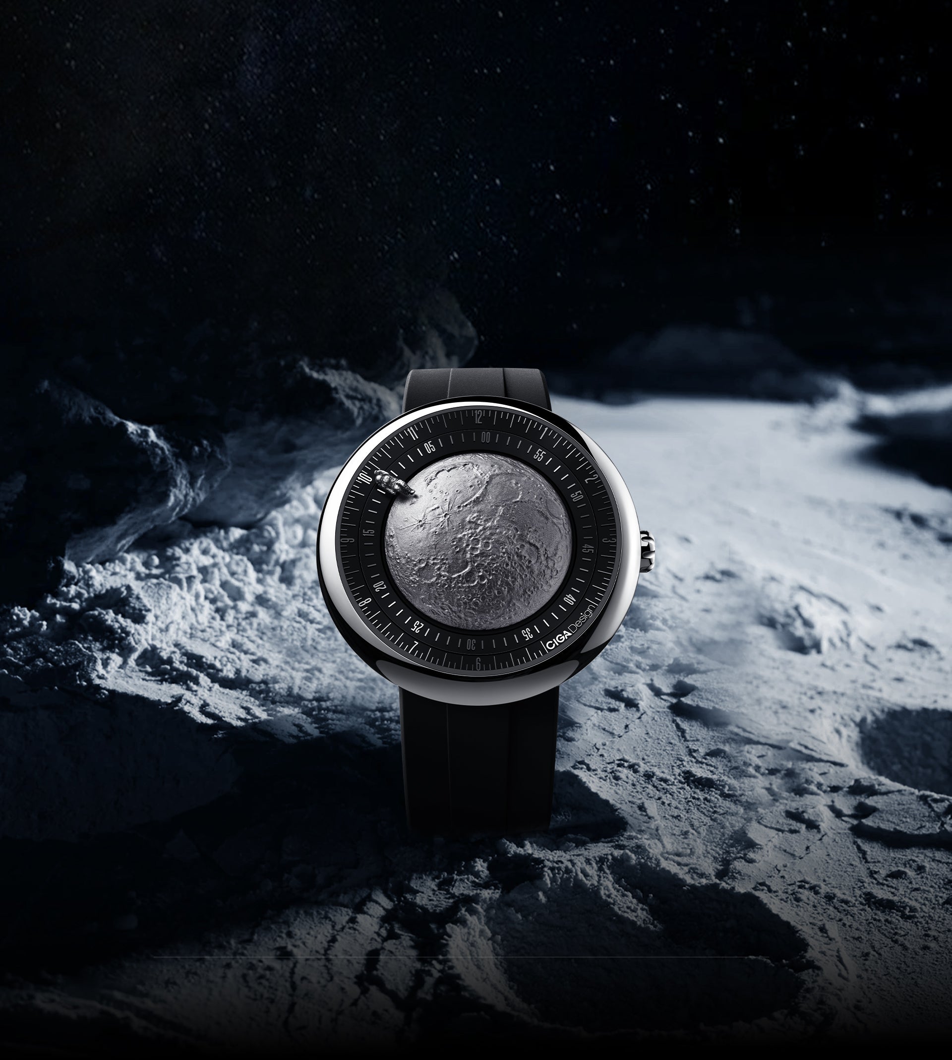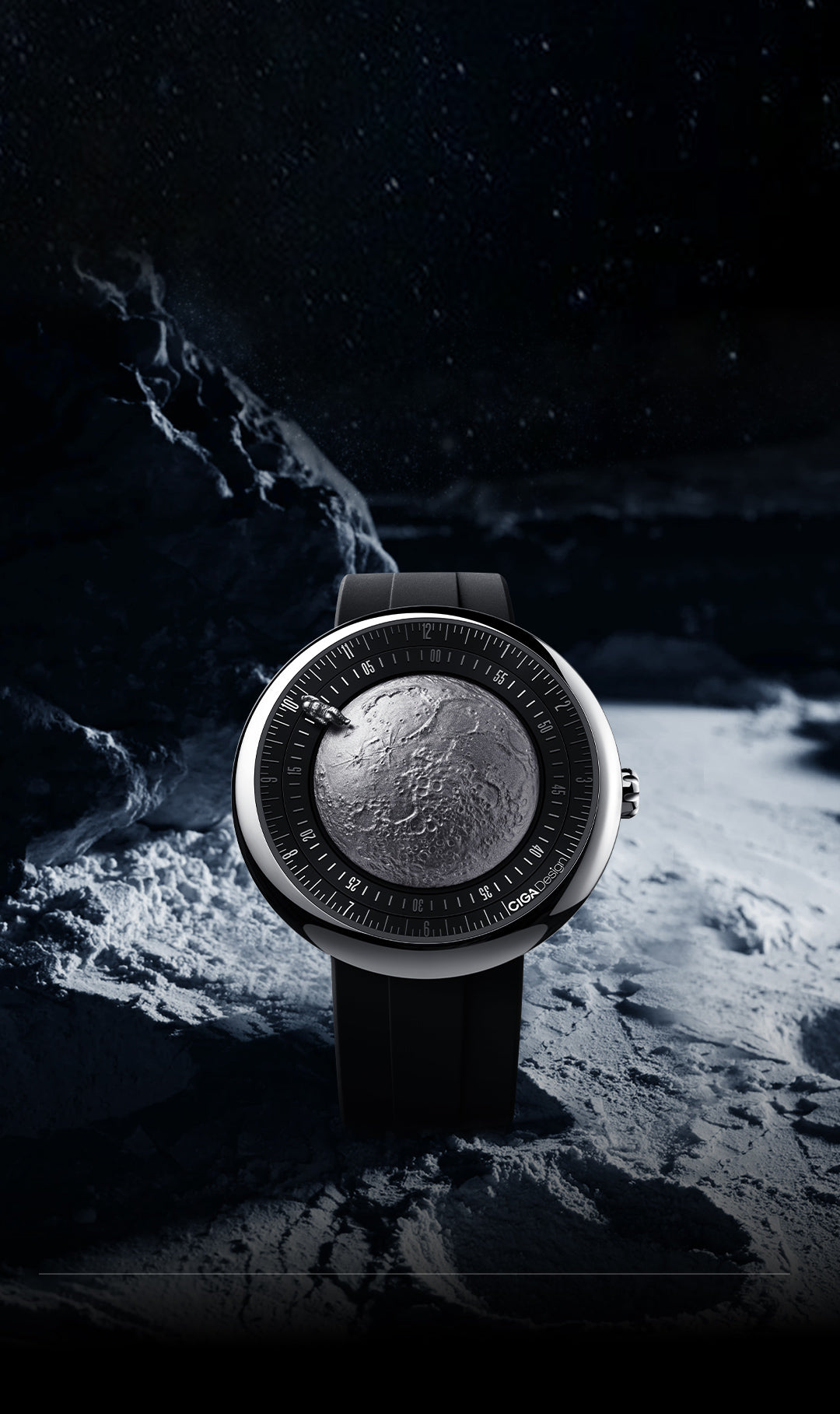 the moon dial is micro-engraved at 0.05mm precision, faithfully recreating the lunar surface from NASA’s